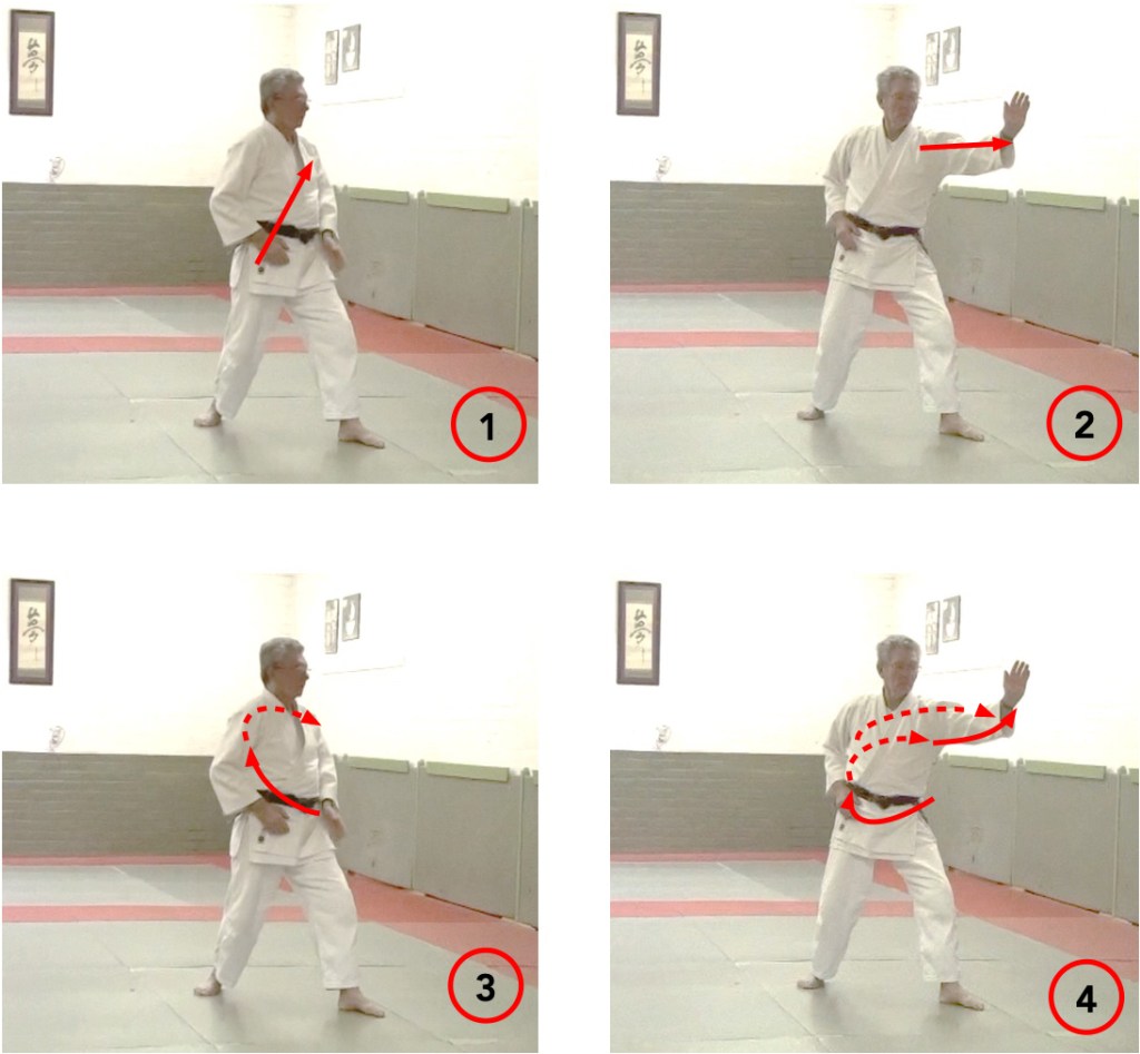 - Picture 3- Initiating from the hara to the opposite armpit following a diagonal course. Using the back to let the flow to the arm