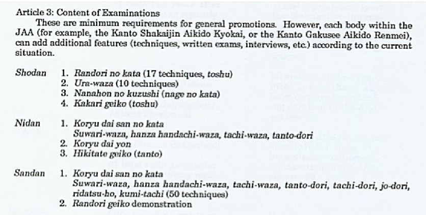 Shodan is built around the randori concept in Tomiki Aikido. The Principles (shizentai no ri, ju no ri and kuzushi no ri) are an integral part of the grading demonstration.