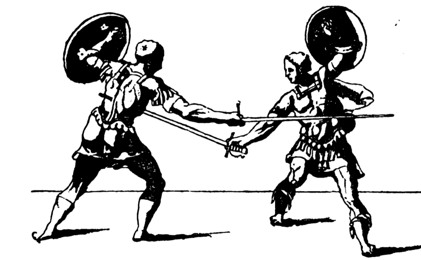 The origins of contemporary fencing must be found in Antiquity and medieval fighting methods. The swords used then were suitable as impact weapons and less so as stabbing weapons. The use of a shield to absorb the blow of a sword was widely accepted. Therefore, the warriors of the time were probably physically very strong. One cannot speak of true fencing.