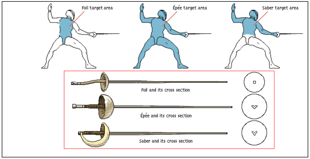 Today’s competitive fencing is largely based on a stabbing technique. Three types of weapons are promoted. Floret and epee are stabbing weapons, a sabre is a stabbing and impact weapon.