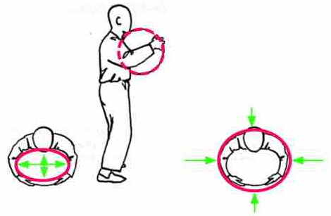 The principle of giving movements a circular, flowing, non-okori course. The circular movements can be thought of as horizontal and vertical rotations.